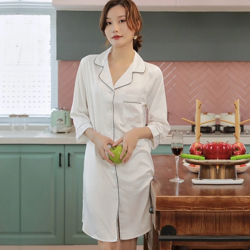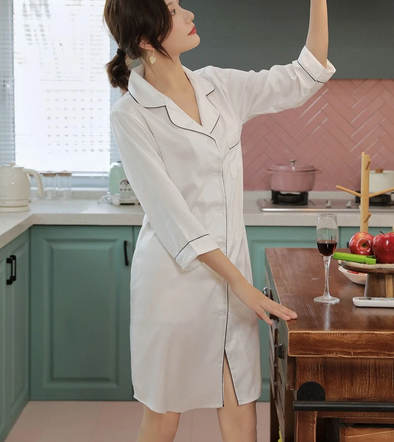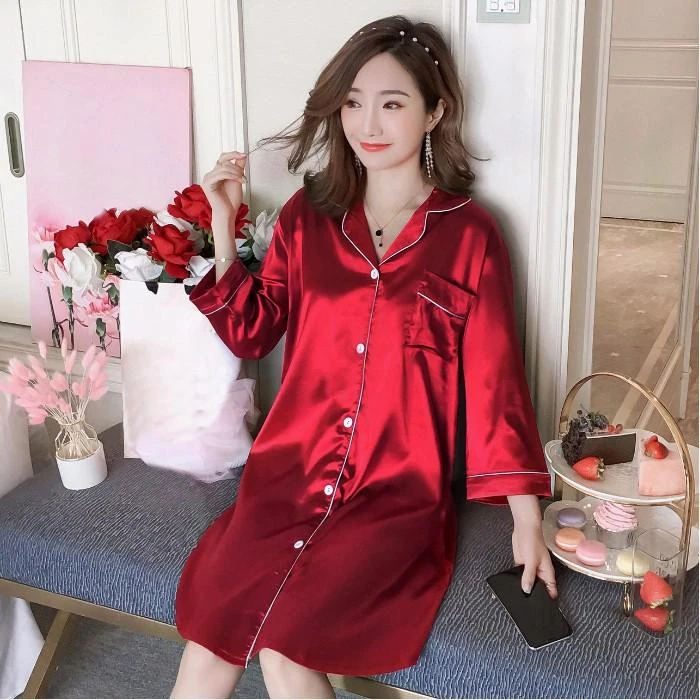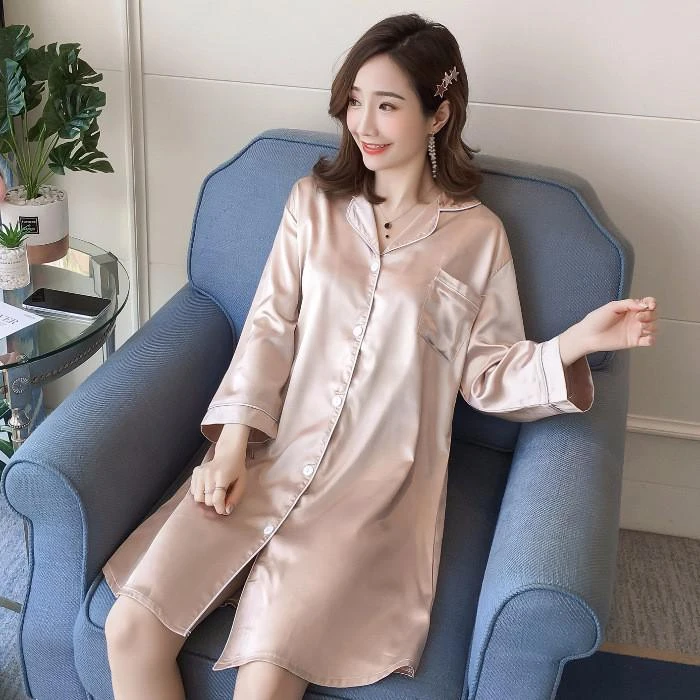 Vous serez également la plus jolie dans cette Chemise de Nuit Satin Longue à manches longues avant de dormir ou au petit réveil. Douce au toucher et respirante sur le corps, elle vous procure confort et style ! Cette tenue peut être un cadeau idéal. Elle convient à toutes les morphologies, aussi bien pour celles désireuses d’être sexy que celles souhaitant simplement dormir en tout confort.