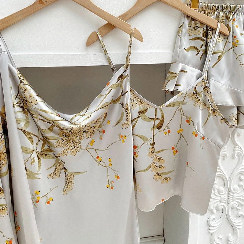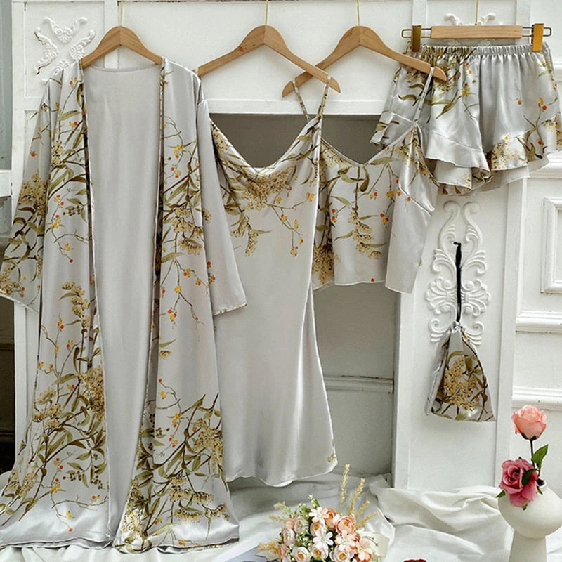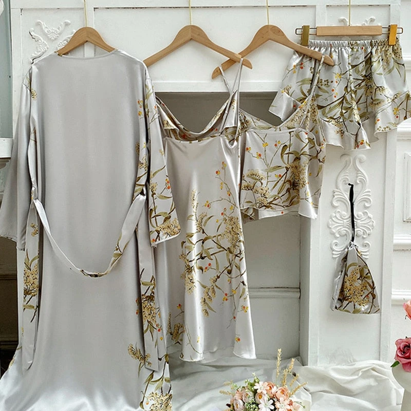 Pour des nuits et des réveils pleins de douceur et de fraîcheur, craquez pour cet Ensemble Pyjama Satin Femme composé de 4 pièces !