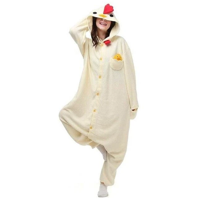 - Un Pyjama Animal Poule que vous allez pouvoir utiliser comme un déguisement poule à votre prochaine soirée costumée