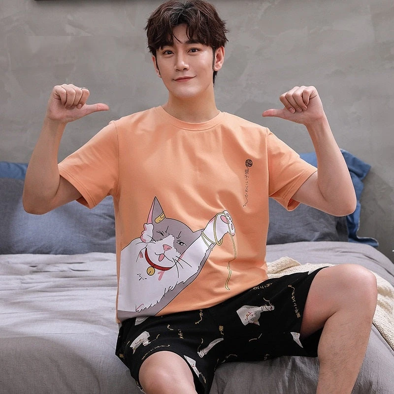 Pyjama Assorti Homme et Femme avec Motif Chat à manches courtes, un ensemble léger et élégant !