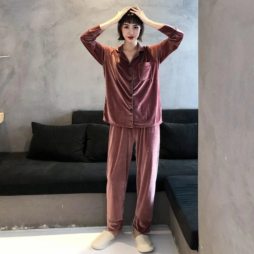 Pyjama de Couple en Velours à Manches Longues, l’idéal pour passer une nuit à deux.