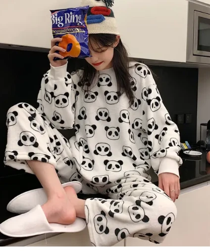 Composé d’un haut à manches longues et d’un pantalon, Pyjama Femme Ensemble Coton enveloppera de douceur de la tête aux pieds. Motif panda et savourez la chaleur réconfortante de ce tout doux pyjama, spécialement conçu pour l’hiver. Les manches longues, légèrement bouffantes, ajoutent une touche de confort supplémentaire, vous permettant de vous détendre en toute aisance.