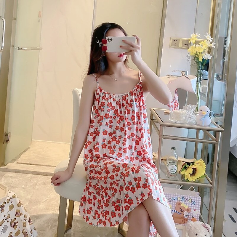 Cette sublime Pyjama Fine Bretelle en Coton de couleur rouge va certainement vous conquérir. Une robe si stylée et élégante, que vous pourrez même porter le jour à la maison pendant votre repos.